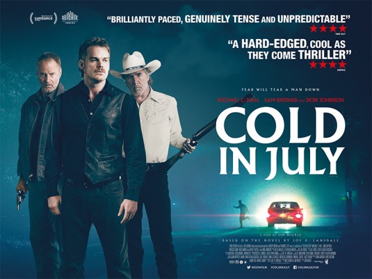 Cold in July begins and ends with a single bullet to the head, one delivered by a shaky hand and the other a firm… while the 1st act is unfolding in this Southern-fried crime thriller and proceedings seem somewhat conventional, good luck guessing who the second bullet greets, and from whom it is delivered.